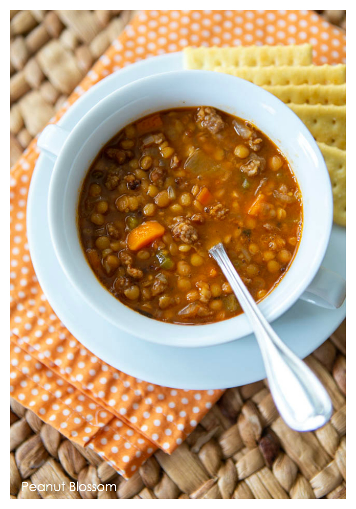 3) Spicy Sausage and Lentil Soup