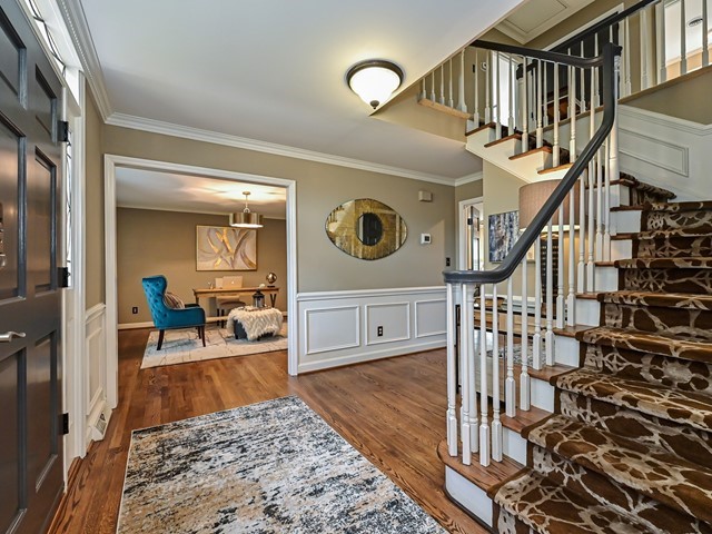 A luxurious owners suite with renovated bath, 3 additional bedrooms and renovated full bath are on the upper level.