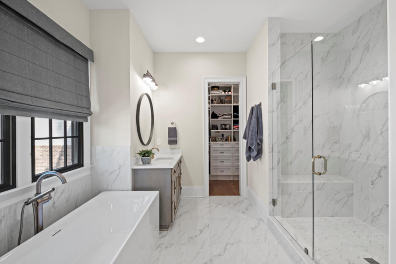 The Primary Bedroom is on main with a large custom closet and an elegant primary bath.