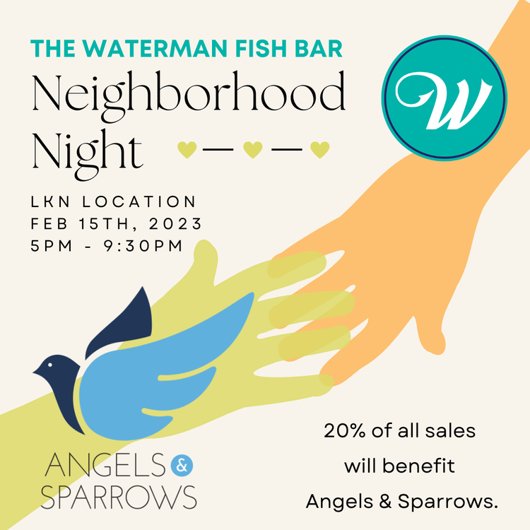 Need dinner plans? Head to The Waterman Fish Bar in Lake Norman or South End to slurp, savor, and sip for a good cause. At the Lake Norman location, 20% of ALL SALES will benefit Angels & Sparrows, with no codes or mentions needed. Angels & Sparrows is a Community Table and Resource Center that empowers underserved families to reach their potential by providing access to food security and educational opportunities that lead to a fresh start.