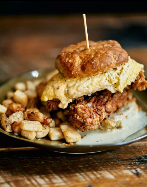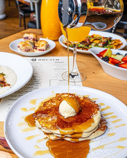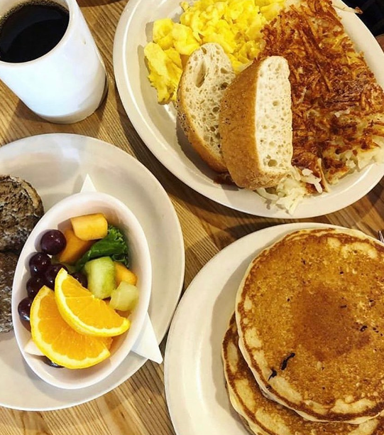 The Scoop: A spot that boasts all-day breakfast and brunch items, including fried chicken and cornmeal pancakes, ricotta stuffed French toast, customizable fluffy pancakes and more.