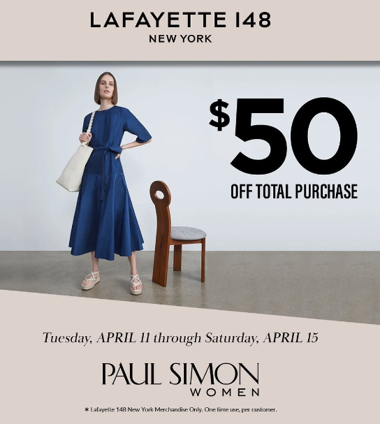 Find classics to fresh Spring styles of Lafayette 148 New York at Paul Simon Women. This weekend only, take $50 off your Lafayette 148 New York purchase.