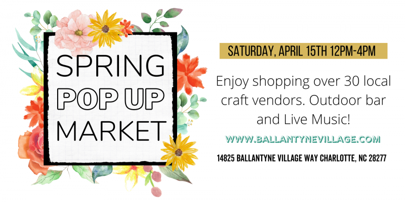 The first spring market is here! Shop over 30 local craft vendors, sip drinks from the outdoor bar, and enjoy live music all afternoon at the Ballantyne Village.