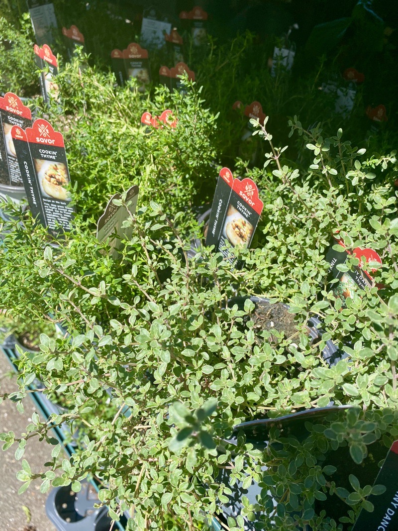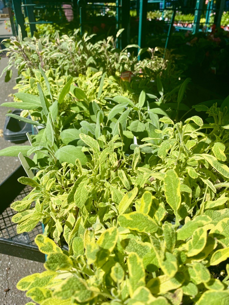 We spotted maybe 5-6 varieties of Thyme along with several sage types ~ we love these herbs in planters, as pretty accents, and over the edge of our raised veggie beds.