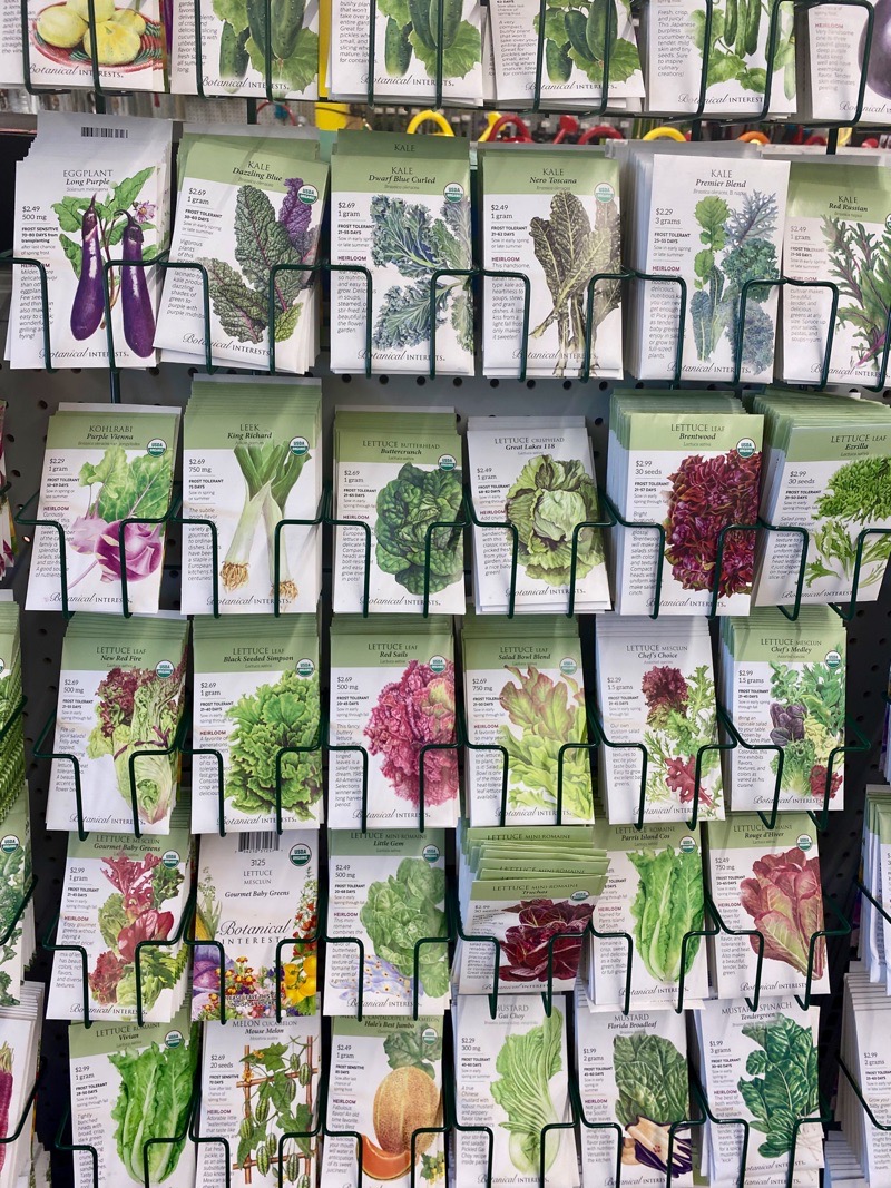 Blackhawk has it all for you, and we like to go with a combo. Some things are super easy to grow from seed ~ arugula, lettuces and spinach until about June when it starts really getting hot, then kale and chard plus flowers ~ zinnias, cosmos, foxgloves, rose campion, whether in a gathering of large containers, a raised veggie bed, or any section of good dirt & some sun in your garden. You can go with seed-starting or you can just sow rows of seed. Seed is so inexpensive, why worry? Try some out and see what works for you. Seeds are especially good for the heirloom and unusual varieties as they can be hard to find as plants.
