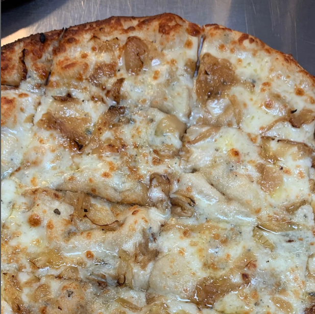 What we’re having: Their version of a “white” pizza with olive oil and garlic base, house provolone, gorgonzola, parmesan cheese, and caramelized onions.