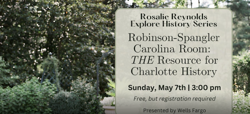 Start digging into Charlotte-area history and pretty soon you’ll discover the Robinson-Spangler Carolina Room of Charlotte Mecklenburg Library. As part of the Rosalie Reynolds EXPLORE HISTORY! series, Marcellus “MT” Turner and John O’Connor share the impressive resources available now — and tell what’s to come. This event is free to attend, but donations are welcome.