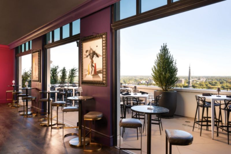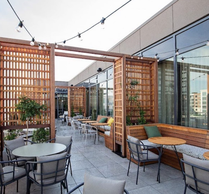 One of the prettiest rooftops in Charlotte, RH’s year-round rooftop restaurant in Phillips Place offers breakfast, lunch, and dinner. Dine under this skylit garden surrounded by trickling fountains, London plane trees, and all the sparkling chandeliers you can dream of.