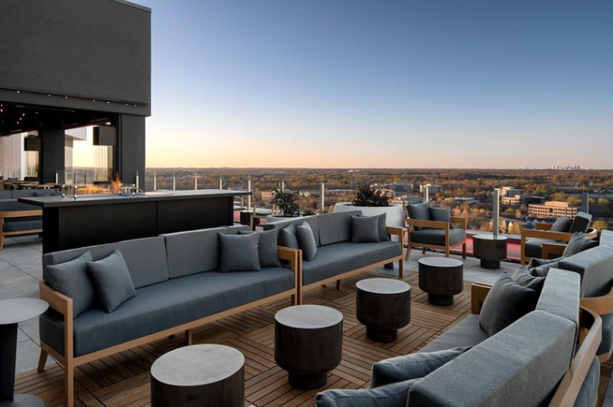 Head to the 19th floor of Kimpton Tryon Park for sweeping park and city views, craft cocktails, and sharable menu options.