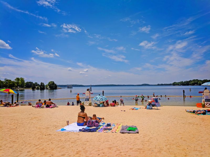 Ramsey Creek is a waterfront beach and park at Lake Norman. It offers swimming, boat docks, a playground, nature trails, and fishing pier. Lifeguards are on duty at the beach and its open Wed-Sun late May through Labor Day.