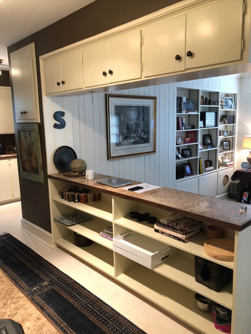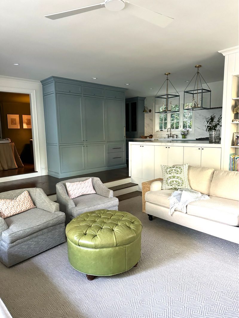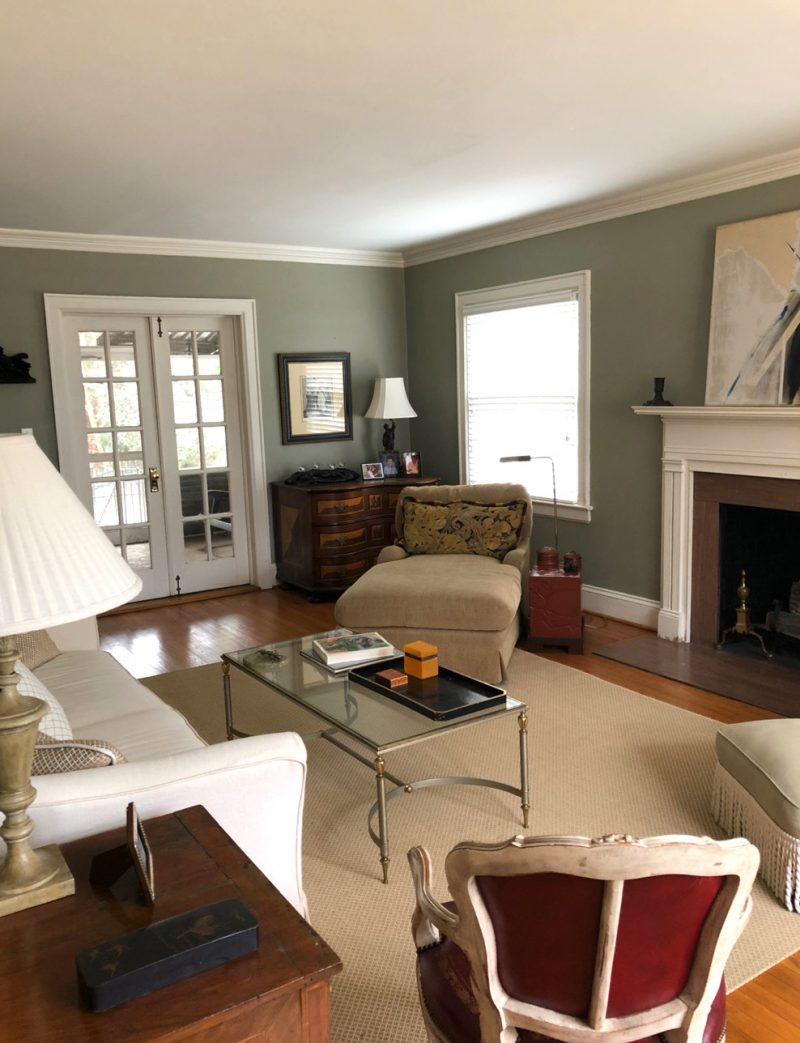This room is an extension of the foyer and opens into the Kitchen Family Room. We doubled the size of the cased opening, eliminated the linoleum floors and painted the entire room Sherwin Williams Relentless Olive.