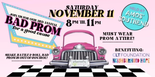 QC SWAP (Socials With A Purpose) hosts their 3rd annual Tacky Prom to support Neighborhood Hope and Changing Lives Together Foundation (CLT Foundation). Vote for your Prom King and Queen to support Neighborhood Hope and CLT Foundation.
