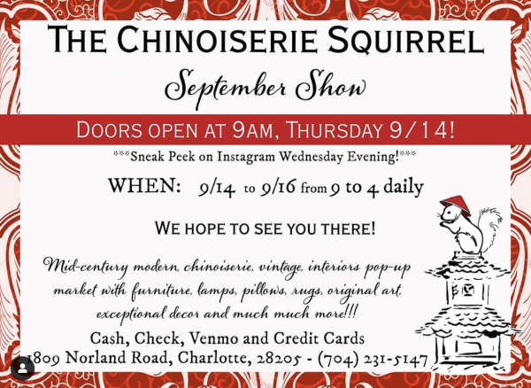 The Chinoiserie Squirrel kick off date is Thursday, 9/14 this month