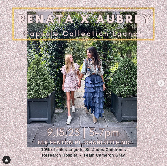 Calling all tweens and fashionistas! Renata x Aubrey is launching an age-appropriate and comfortable collection for tweens and teens to wear. Come support this limited line at Hilliard Studio Method this Friday from 5 – 7 p.m. Best of all, 10% of proceeds will go directly to St. Jude Children’s Research Hospital via “Team Cameron Gray”.