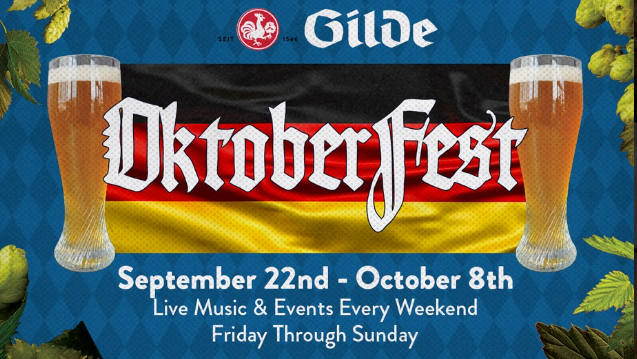 Head to Gilde Brewery for the opening weekend of Oktoberfest. There will be Oktoberfest events ever Friday through Sunday until October 8, including live music, stein holding competitions, keg taps, outdoor inflatable axe throwing, and more.