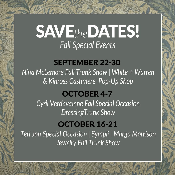 Shop ’till you drop this weekend at Paul Simon Women in SouthPark. Save the date for other fall special events coming to the store next month!