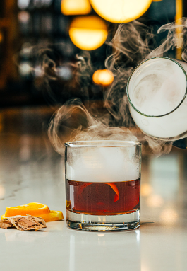 The Scoop: Link & Pin’s Fireside Chat cocktail will have you longing for a fire pit and great conversation. Made with Rittenhouse Rye, Becherovka, Amari, mole bitters, and served smoking, this cocktail is the epitome of fall. We also love the See You Next Fall, with flavors of rum, maple and ginger.
