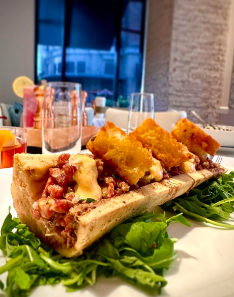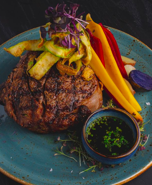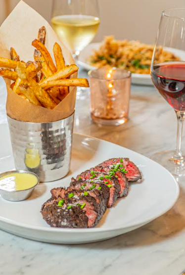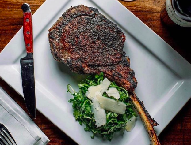 Start your evening with a classic wedge or caesar salad and some cocktails. Then dive into one of Link & Pin’s certified Angus Beef® steaks (all cooked at 1800°f for a charred “Pittsburgh-style” exterior finish), like the filet mignon or Dry-Aged Porterhouse for two, with truffle lobster mac n cheese, grilled asparagus or roasted carrots for sides. Finish on a sweet note with house-made donuts or Nutella Budino. View their menu here.