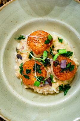 Enjoy a delicious date night at The Garrison in Pineville. We love their pan seared scallops, with creamy grits, onions, peppers, and creole sauce, the cheerwine short ribs, with celery root, collared greens, pickled cranberries, and cheerwine demi, or their duroc dry aged pork chop, with peach mustard glaze, roasted fingerling potatoes, and brussels sprouts.