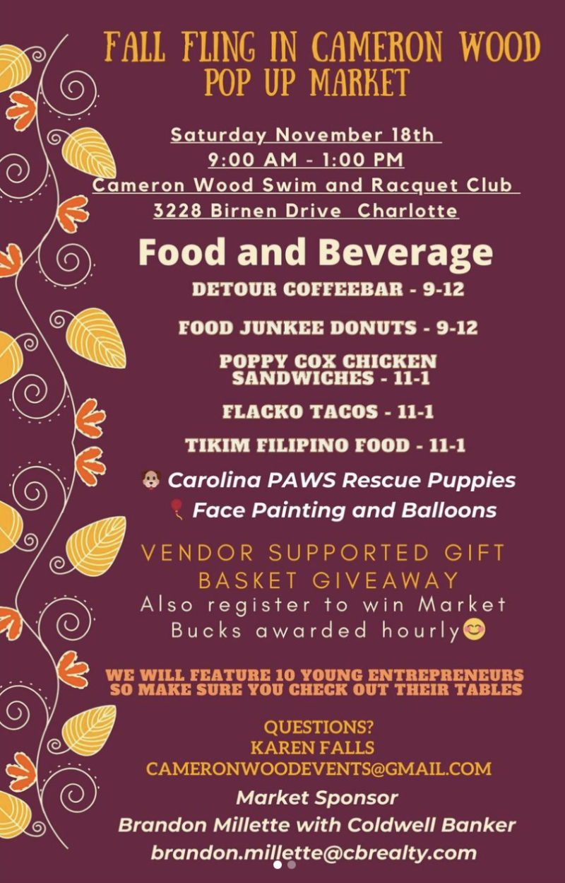 The Fall Fling Market Returns to Cameron Wood this month on Saturday 11/18:
