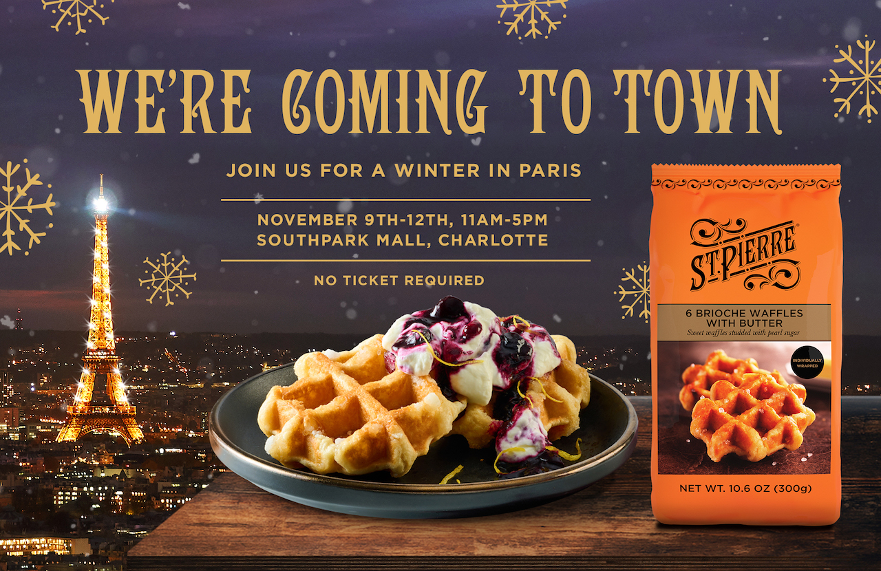 St Pierre Bakery is bringing a Winter in Paris experience to Charlotte, offering families, friends, and couples to enjoy a Parisian winter wonderland and the magnifique taste of St Pierre’s brioche delights. Create your own magnifique holiday treat, your own holiday postcard, sip exclusive French-inspired libations and enjoy giveaways of a variety of limited-edition St Pierre treats and goodies.