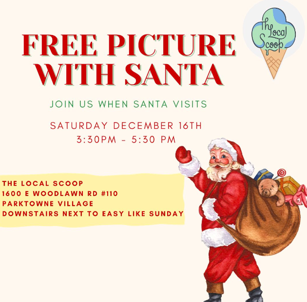 The Scoop: Snap a free picture with Santa then enjoy some delicious ice cream at The Local Scoop’s location in Parktowne Village.