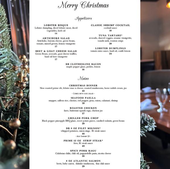 Link & Pin will serve their full brunch menu on Christmas Eve, and then will switch to the full, regular dinner menu at 4pm. The last seating will be at 8pm.