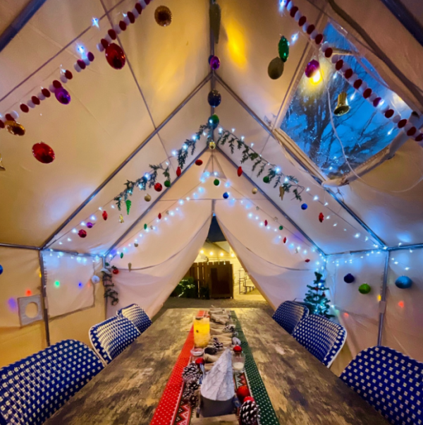 Dine outdoors in festive-themed heated tents/igloos. The Goodyear House and State of Confusion still have igloos and heated tents available to dine in. Or cozy up with a drink at one of Charlotte’s heated rooftops. Aura Rooftop, Fahrenheit, and Nuvolé Rooftop TwentyTwo are all great options for cocktails with a view.