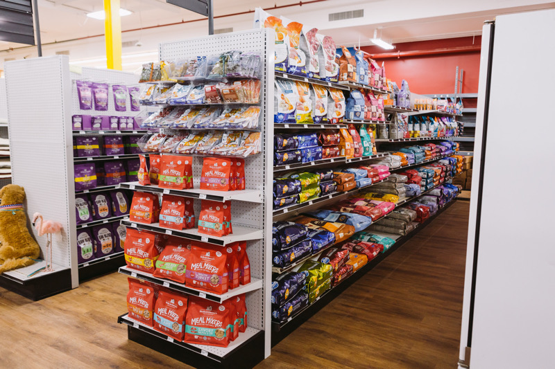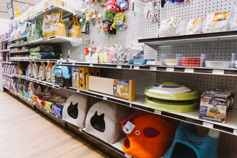 As for pet accessories, you’ll find an aisle for bowls, leashes, collars, harnesses, beds, litter supplies, scratchers and more.