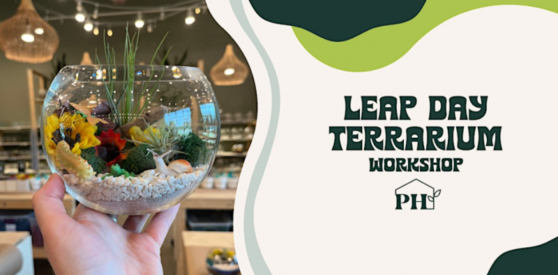 In honor of Leap Day, build your own Leap Thirsty Terrarium with PlantHouse. The workshop includes an overview of air plant care and terrarium assembly, as well as all the air plants and decor to make a terrarium that is one-of-a-kind and ready to display. Choose between a 6″ or 8″ bubble ball terrarium at check out.