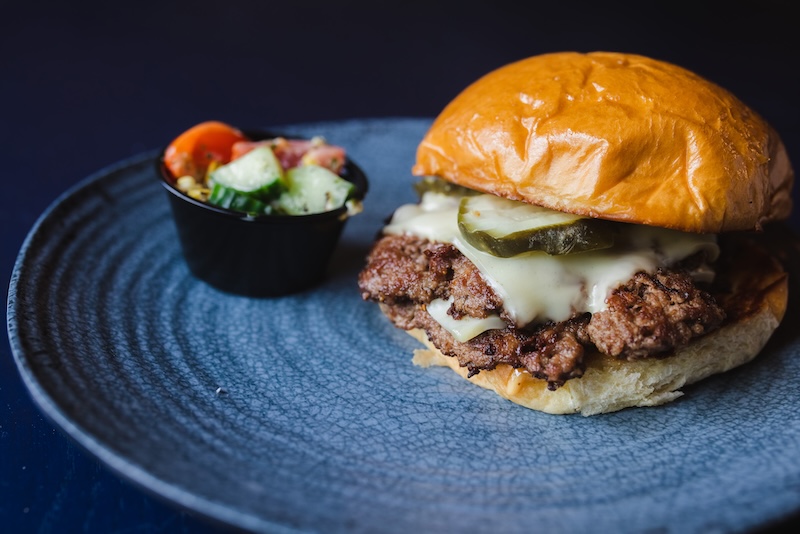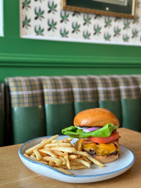 You’ll find Rosemont’s burger titled as THE BURGER on the menu. It has two smashed patties, griddled onions, American cheese, pickles and black pepper mayo squished between a toasted potato bun. Plus, it’s served with house fries. We’re drooling just thinking about it.