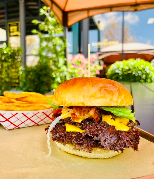 If you’re in Mooresville, NC stop by Barcelona Burger and Beer Garden for a drink and burger. Try the Barcelona Classic with American cheese, lettuce, pickle, tomato, onion and house sauce. Pair your burger with a side like truffle fries, sweet potato fries, mac and cheese or roasted veggies.