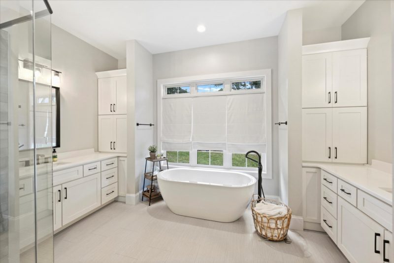 The main level primary suite is a private retreat with an en-suite bath including dual vanities, a free standing soaking tub, separate shower and water closet. There are 3 additional bedrooms and 2 baths upstairs, along with a gathering room / bonus space.