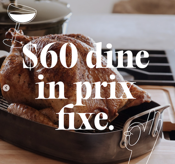 Enjoy a delicious Thanksgiving at Napa restaurants, for $60 per person, MENU HERE. All the regular dishes plus special treats. Reserve on Open Table.
