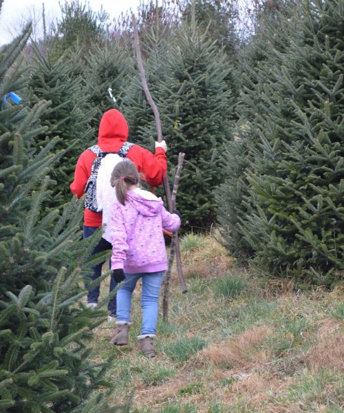 Trees range from 3 feet to 13 feet. The farm staff will cut, bail, and load your selected tree.