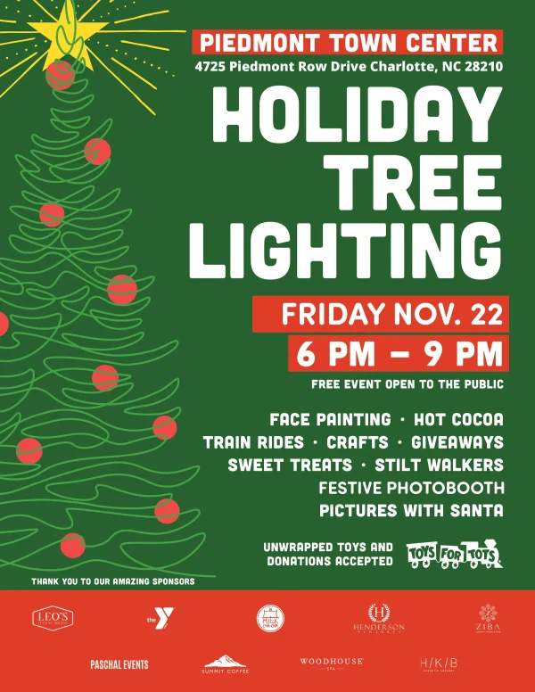 Head to Piedmont Town Center for the 2024 Holiday Tree Lighting. There will be face painting, train rides, a festive photobooth, storytelling with Mrs. Claus, a visit with Santa, and lots of treats. Toys for Tots will also be there to collect unwrapped toys and accept donations.