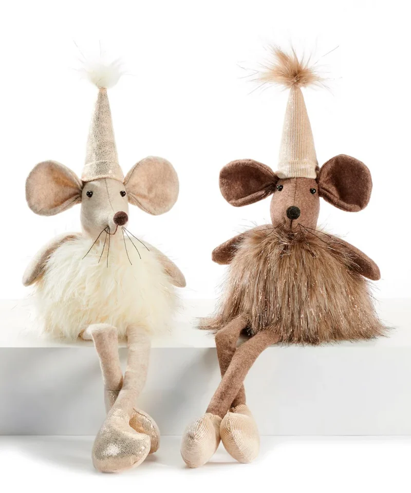 This adorable mouse shelf sitter is styled with a faux fur pom-pom and body with subtle gold highlights throughout. Available in 2 assorted colors: Cream and brown. Individual purchases will be accompanied by a note section for you to indicate your preferred color. If no preference is stated, a random color will be sent.