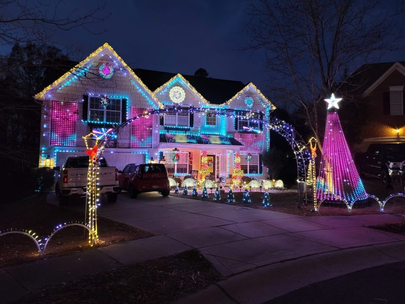 This home’s lights have become a favorite in the Charlotte area. The owner is often dressed as Santa and standing outside to greet the cars passing by. They take donations for St. Jude’s Children’s Hospital.