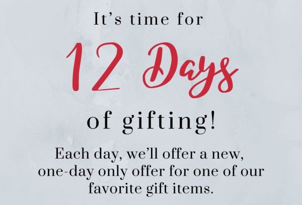12 Days of Gifting at Bedside Manor. Each day, one of their favorite gift items goes on sale. Find the daily deals via their email or instagram stories.