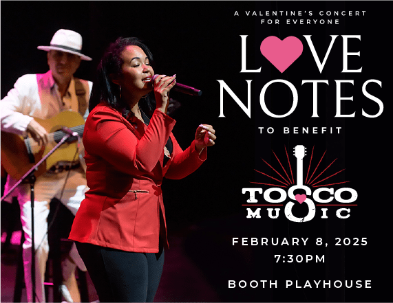 Join Tosco Music for Love Notes: A Valentine’s Concert for Everyone on Saturday, February 8, at the Booth Playhouse. Enjoy an evening of love-themed songs from talented musicians, all in support of Tosco Music’s nonprofit mission. Whether you’re paired up, flying solo, or with friends, all are welcome to celebrate love, joy, and community while supporting a great cause.
