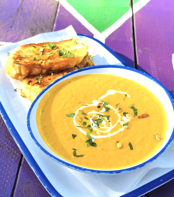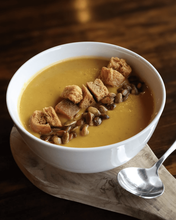 We love the Butternut Squash and Pear Soup from The Artisan’s Palate, featuring butternut squash, caramelized pears in curry, coconut cream and pepitas. And, if you’re looking for something a bit more traditional, you can opt for the classic Roasted Tomato and Basil Soup from this restaurant.