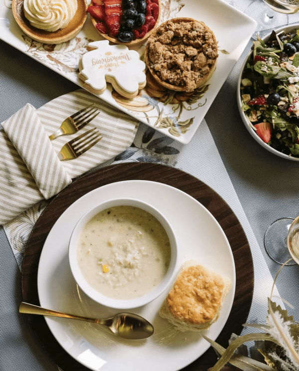 You likely know Amelie’s for the decadent pastries and coffees on the menu, but did you know they also serve an equally decadent soup? The Chicken Pot Pie Soup features creamy chicken with peas, carrots, potatoes, and green beans, plus it’s served with a light and flaky biscuit.