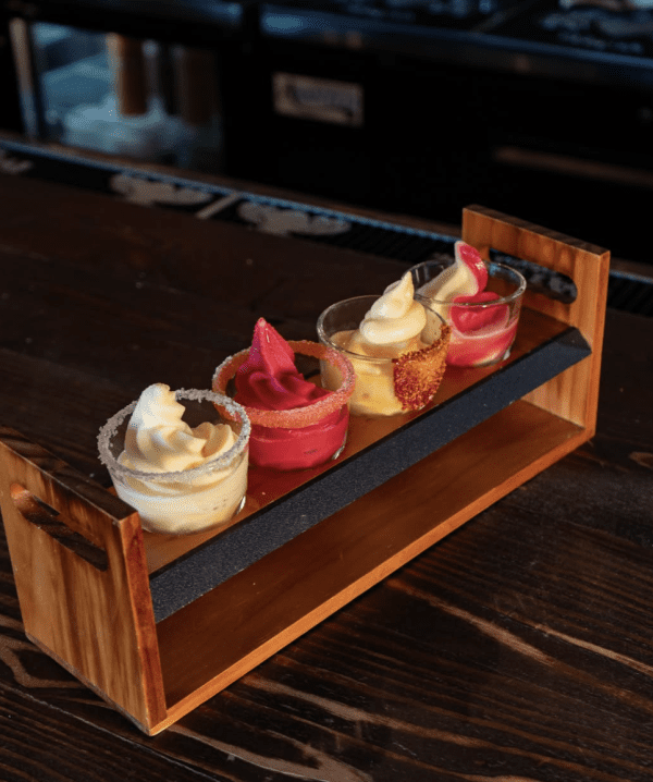 Que Fresa serves up a variety of margaritas you won’t want to miss. There’s La Classica, a house margarita, La Patron, a margarita made with Patron, and La Bonita, a Cazadores margarita. But the real show-stoppers are the soft-serve frozen margaritas available as a flight in lemon, strawberry, blackberry and swirl flavors.