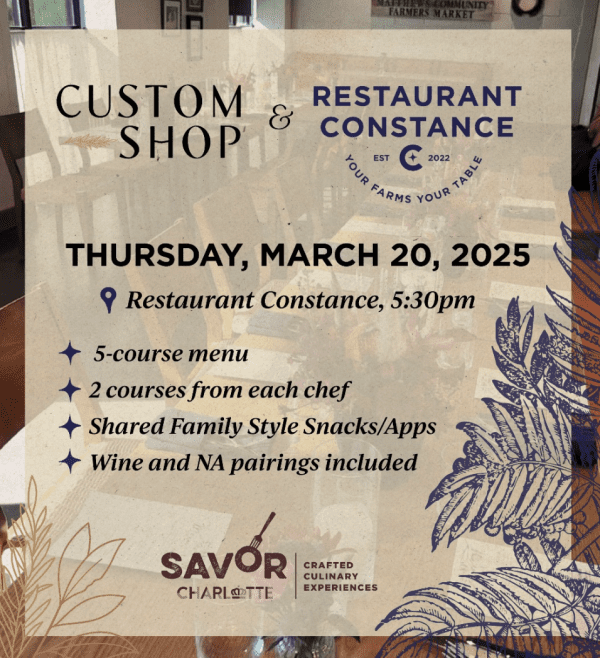 Join @andres_kaifer and @chefsamdiminich as they merge culinary visions at @restaurant_constance for an intimate dining experience celebrating local ingredients and shared stories.  March 20th. Limited seating. Link in bio for tickets ($150+ per person) to this Savor Charlotte exclusive.
