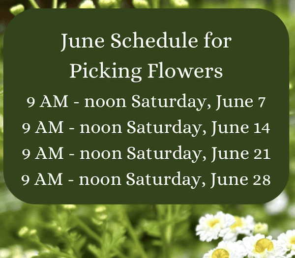 A working flower farm that offers U-Pick. They announce the schedule on Sunday for the coming week.