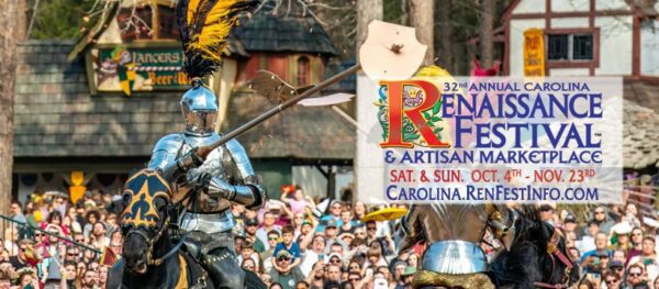 Take a step back in time at the Carolina Renaissance Festival, where there’s no shortage of medieval-themed entertainment, including jousting, falconry, games, and rides. Plus there’s an artisan market full of handcrafted items and crafts. The annual Carolina Renaissance Festival returns Saturdays and Sundays, from October 4th through November 23th, 2025. The Festival day kicks off with a pre-Opening Gate Show at 9:10 a.m. and gates are open from 9:30 a.m. until 5:30 p.m.