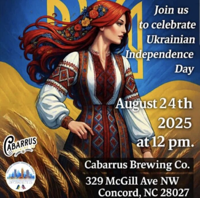 In honor of Ukrainian Independence Day, the Ukrainian Congress Committee is hosting a free family-friendly festival with music, food, kids’ activities, and more. The festival will go from 12 – 5 pm on Sunday, in the Kettle Room of Cabarrus Brew Company.