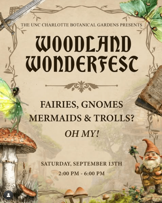 For one magical day, the UNC Charlotte Botanical Gardens will be transformed into an enchanting realm of forest fairies and mystical creatures. Kids are invited to dress in their favorite fantasy outfits and explore the gardens, discovering magical stops along the way. No costume? No problem. The Elfin Emporium will have wings, wands, and other treasures to complete the adventure. After exploring all the woodland wonders, families can grab a bite from the food trucks parked nearby.