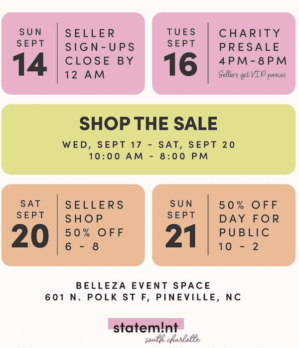 There’s a new Fall Pop-Up Consignment Event by Statemint South Charlotte with 50-80% off retail prices including men’s and women’s clothing, shoes, handbags, jewelry, and more in Pineville.