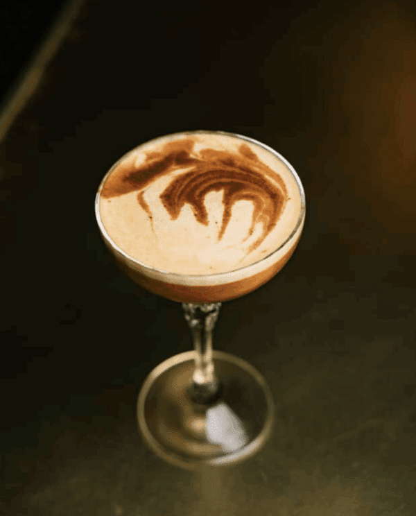 Cool and creamy with just the right amount of spice, Trolly Barn’s pumpkin spice espresso martini features spiced rum, Pumpkin Spice RumChata, Kahlúa, and cold brew.
